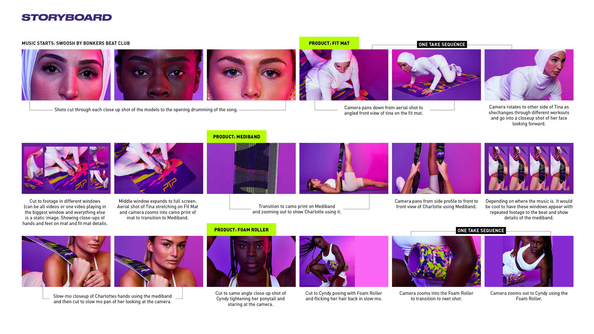Unfortunately, due to the second lockdown, all planned production was canceled. With the campaign launch approaching, we adapted by animating studio imagery and some graphics designed by Diego Sepulveda to bring the vision to life. The final campaign video retained key elements from the storyboard, maintaining the bold, high-impact aesthetic. Editing was completed by Ben Foster.